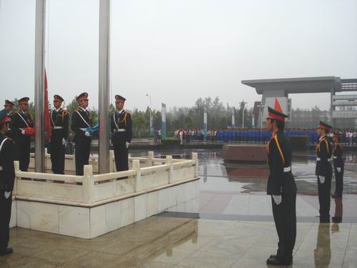 9月18日清晨,在院团委的组织下,我院国旗护卫队在明志广场举行了主题为“铭记历史,勿忘国耻”的纪念“九•一八”升旗仪式。院爱国者协会、院广播站成员及水利系、机电系、土木系全体新生共2500余人参加了升旗仪式。