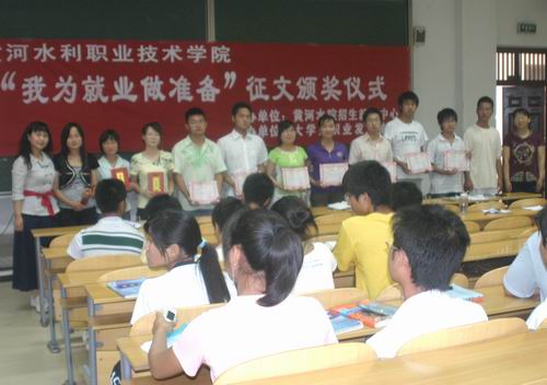69下午,由院招生就业中心举办的“我为就业做准备”征文比赛颁奖仪式在教学楼6102室举行,就业办主任曾宝亭、王进及各系部学生代表参加了颁奖仪式。本次征文比赛经过评选,机电系张正缔等11名同学获得一等奖。
