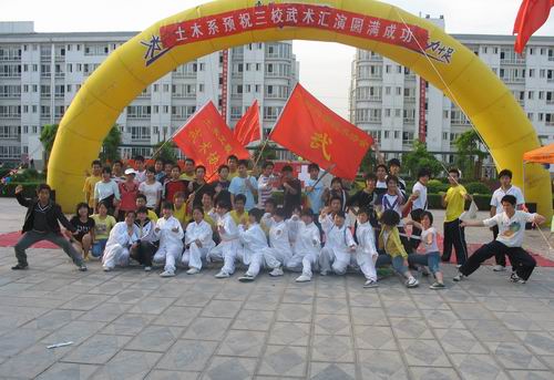 为丰富大学生课余文化生活,增进我院与河南大学、开封大学之间的交流,517日下午,由土木工程系主办的“创和谐校园,迎60年国庆”三校联合武术汇演在扬帆广场举行。三所高校的武术协会参加了汇演。我院土木系分团委书记管欣、娃哈哈开封市场主管常许乐及开封电视台记者任研参与了活动。