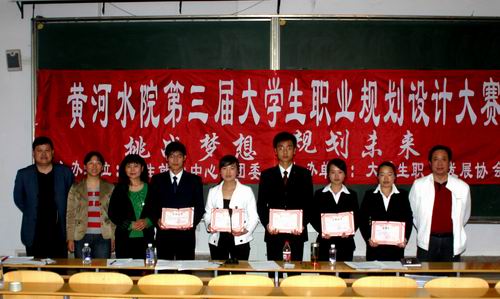 本次大赛由招生就业中心、团委联合举办,以“挑战梦想,规划未来”为主题,旨在提升大学生的职业素质与能力,传播和普及职业规划理念,帮助大学生学习和掌握职业规划的理论和方法,树立正确的成才观和就业观。大赛自4月1日开赛以来,受到了同学们的高度关注。经过系部预赛、院级预赛、决赛,大赛最终评选出一等奖5名、二等奖7名、三等奖13名。环化系王俊利、水利系吴广旭、管理系刘世超、邬丹丹、水利系彭金花等5位同学依靠出色的发挥获得一等奖。另外,大赛还评选出优秀组织奖2名,分别是水利系、环境化学工程系;优秀指导教师3名:李晓娟、薛飞、陈志冉。