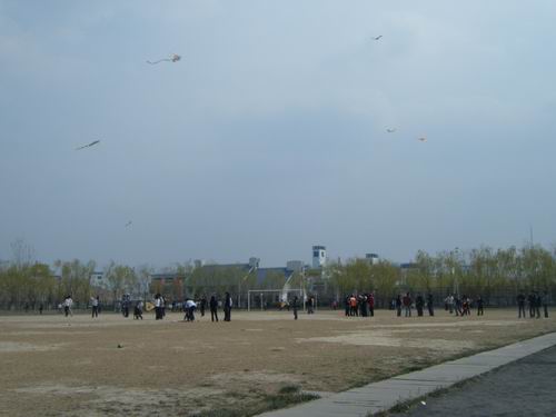各式各样的风筝飘扬在操场上空,有灵巧的燕子、美丽的鱼……风筝是梦想的象征,传递和谐、安宁和美好。有的风筝在高处相逢缠绕,有的随风而去。最后,风筝一个个渐飞渐远,而希望也随之放飞。飘舞的风筝在净化校园每一寸土地的同时也净化了同学们的心灵。活动结束时进行了学生签名及现场抽奖,经过集体评选,评出了最佳风筝创意奖。