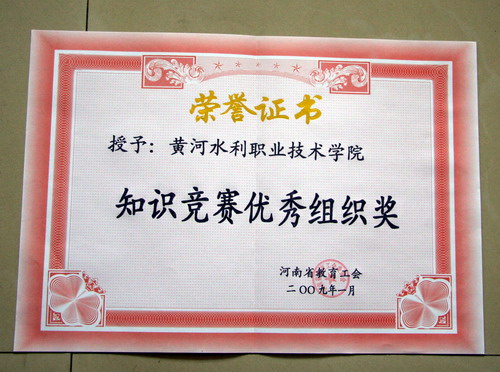 2月18日,河南省教育工会工作会议召开,我院工会喜获2008年河南省教育工会创新工作一等奖,学院同时荣获省工会知识竞赛优秀组织奖。日前,院党委副书记、工会主席张惠贞出席省教育工会工作会议并领回荣誉证书。