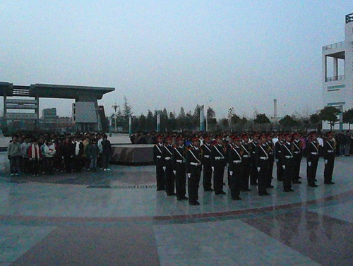 为纪念“一二·九”运动73周年,我院国旗护卫队于12月8日早7点在明志广场举行了隆重的升旗仪式。院学生会、社团联合部、广播站、测绘系全体同学及学院自发参加的青年学子们近2000人参加了此次活动。
