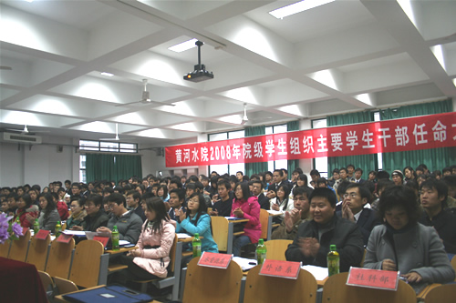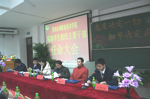 为更好的服务全院师生,展现学院新风貌,及时为学生会注入新鲜血液,123-12日,我院学生会等院级学生组织顺利完成了换届。1216日下午,2008年院级学生组织主要学生干部任命大会在教学楼6202教室隆重举行。院团委书记周志琦、学生处副处长朱焕立、团委副书记谷献晖及各系部分团委书记出席了大会。