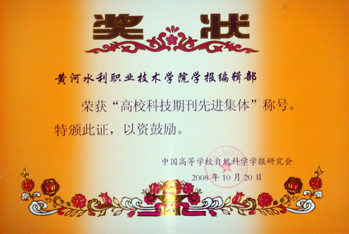 今年11月,《黄河水院学报》被河南省新闻出版局评为“河南省第六届社科期刊综合质量检测一级期刊”。
