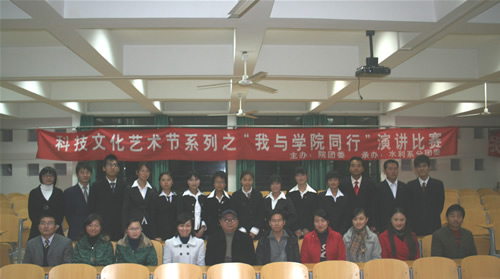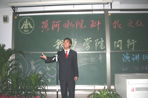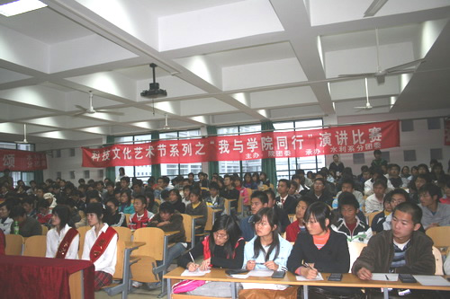 1112,由院团委主办、水利系分团委承办的我院第十二届科技文化艺术节——“我与学院同行”演讲比赛决赛在教学楼6302教室举行。院团委副书记谷献晖、水利系党总支书记来卫东及各系分团委书记出席本次大赛。党委宣传部副部长焦红强、学生处学生管理科科长马晓慧、社科部高扬老师和团委胡楠老师担任了此次大赛的评委。
