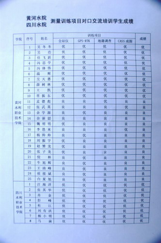 10月23日,我院教师及测量突击队员顺利完成了对口支援四川水利职业技术学院40名学生和1名教师的累计260学时的理论与实践教学,并按照对口支援四川水院教学计划要求,对40名学生进行了考核评价。