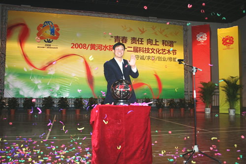 开幕式上,首先为获得2007---2008年度优秀分团委系部颁奖。随后王卫东副书记为本届科技文化艺术节开幕式致辞。他说,本届艺术节的开展对进一步加强校园文化建设,营造浓厚的校园文化氛围,提升校园文化品位、提高大学生的人文素质教育和艺术熏陶奠定了基础。他希望广大同学积极参加艺术节的各项活动中,充分展示水院学子的青春风貌,在参与中得到更多的锻炼。最后,王书记预祝这届科技文化艺术节取得圆满成功并启动开幕彩球。