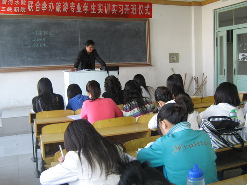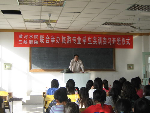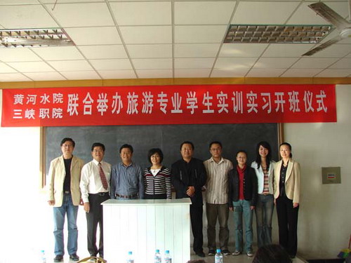 1014,湖北三峡职业技术学院旅游管理专业带头人、管理工程系主任余远国副教授带领该院旅游教研室主任王玲、青年教师王玮和102006级旅游英语专业学生来到我院,就合作举办旅游专业学生顶岗实习进行交流。在我院东校区,两院联合举办了隆重的开班仪式,我院副院长刘紫婷教授出席开班仪式并讲话。