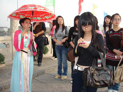 根据双方协商,我院管理系旅游教研室安排三峡职院的学生分别到山陕甘会馆、开封府两个景区进行为期两周的导游认知实习。开封府景区的宋发祥副总经理、李瑞红经理,开封市海洋旅行社韩雪梅经理、开封市交通旅行社孙芃经理、山陕甘会馆导游解说顾问姚媛等,分别对三峡职院的同学进行了现场培训指导。之后,三峡职院的10名学生直接参加了“中国开封第26届菊花花会”导游(解说)服务。