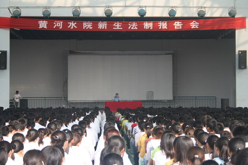 9月17日上午,学生处邀请河南省开封市人民警察学校教务处主任、一级警督李书芳教授在风雨球场为我院2008级新生做了一场法制报告。