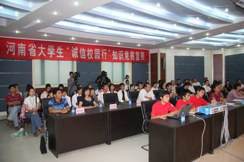 918,由河南省教育厅、国家开发银行河南分行共同主办的全省高校“诚信校园行”知识竞赛D组赛区复赛在我院隆重举行,16所高校代表队分为4个小组参加了复赛,最终,河南大学、周口师范学院、河南中医学院、必赢官方网站等4所高校代表队胜利挺进决赛。