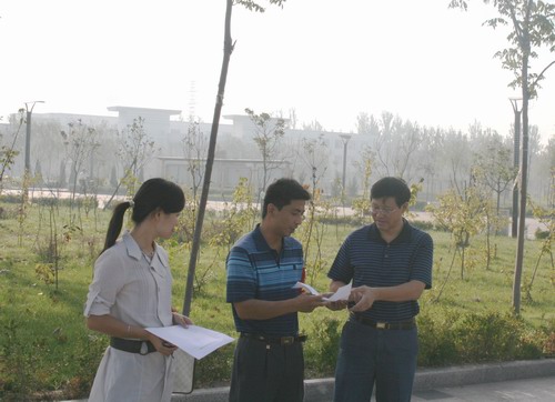 9月1日新学期开学第一天,我院学工系统学风督察小组便开始在1号教学楼东、西两侧对学生上课迟到情况进行督察。党委副书记、纪委书记王卫东亲临现场了解情况。
