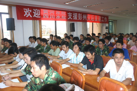 会议中,周书记说,一方面我们两院学生现在是一个集体,不分彼此,有着共同的目标,我们相互之间要互相帮助、团结协作,为灾区人民服好务;另一方面强调安全是头等大事,我们要注意安全,同时要与当地村民搞好关系。最后希望我们能够早日顺利完成任务,使灾区人民能够尽快重建家园。