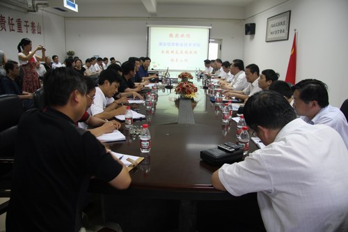 7月11日,淮安信息职业技术学院党委书记安宇、院长田敏一行40人到我院进行考察交流,院领导孙五继、茹正波、王卫东及相关部门负责人热情接待了客人。根据来访日程安排,院领导向客人介绍了我院情况,并详细介绍了我院在创建国家示范性高等职业院校的工作中所积累的经验。在随后的座谈中,双方就全国示范性高等职业院校建设及教学改革工作进行了交流。