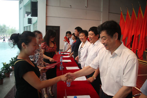 王卫东副书记宣读了《2008届优秀毕业生表彰决定》。140名同学获“省级优秀毕业生”称号,235名同学获 “院级优秀毕业生”称号。王书记希望受表彰的同学珍惜荣誉、戒骄戒躁,在新的工作岗位上创造出更大成绩。