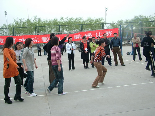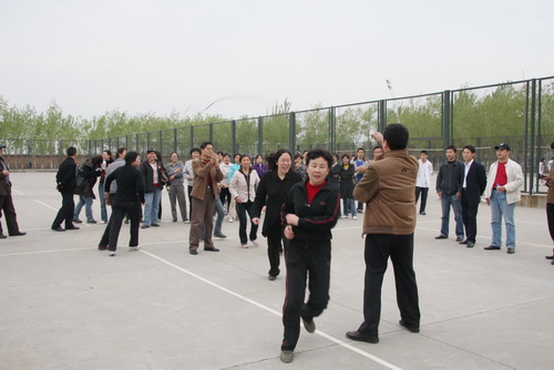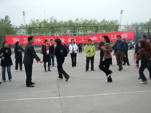 4月10日下午,在我院排球场上,进行了一场以女教职工为主的团体跳绳比赛。全院18个队的队员们,在各部门领导的带领下按时来到赛场。