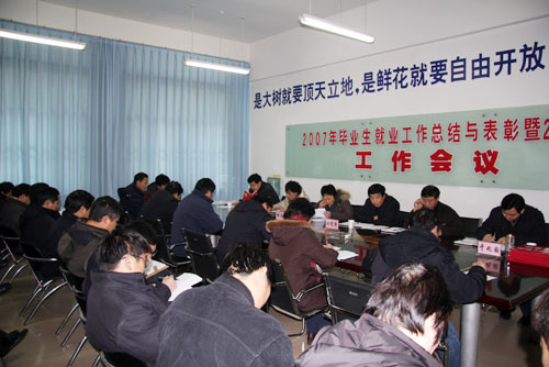 刘紫婷副院长传达了教育部2008年就业工作会议精神,对我院2008年就业工作进行了安排部署。她说,2008年要以 “十七大”相关精神为指导,以提高毕业生就业素质为出发点。她从健全考核奖惩制度、对学生加强职业发展与就业指导教育、提高毕业生就业素质、开拓就业市场、以工学结合促进就业、提高就业质量、拓宽就业信息发布渠道、加强就业情况通报、完善工学结合管理制度等方面对2008年就业工作进行了安排。