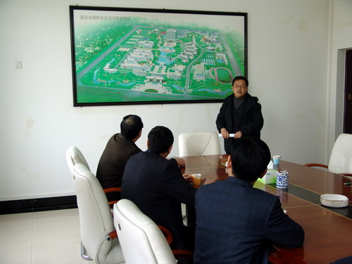 杨士恒主任对来访的各位来宾表示热烈欢迎,张国强老师向客人们介绍了学院校区规划建设方面的情况。李卫国副院长代表郑州铁路职业技术学院对黄河水院近几年的快速发展以及在国家示范性高等职业院校建设中取得的优异成绩表示祝贺,希望能不断地加强两校之间的合作与交流。