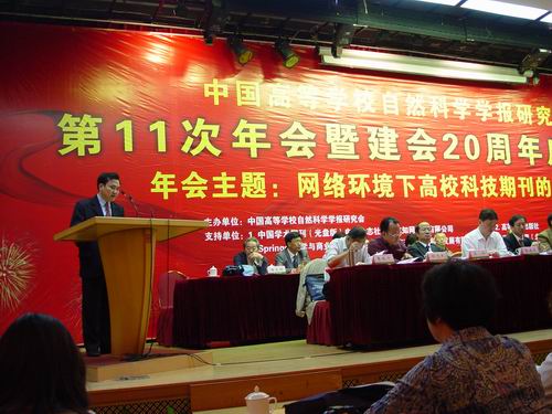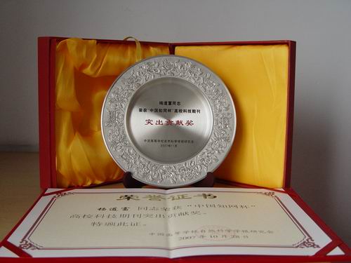 日前,在海口召开的中国高等学校自然科学学报研究会第11次年会暨建会20周年庆祝大会上,我院学报编辑部主任杨道富教授获得 中国知网杯高校科技期刊突出贡献奖,并作为全国职业技术学院中惟一的获奖者在大会上发言。