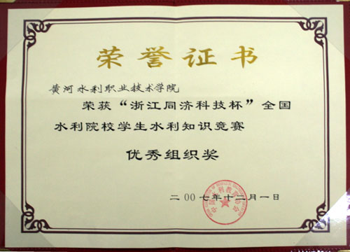 日前,在中国水利教育协会组织的“浙江同济科技杯”全国水利院校学生水利知识竞赛活动中,我院荣获“优秀组织奖”。
