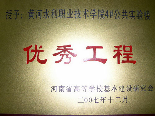 20071015日起,河南省教育厅组织检查组对全省45所普通高校校舍工程质量及管理工作进行了全面检查,还对部分非直属高校进行了重点抽查。结合平时检查的情况,我院被评为河南省高校基本建设管理先进单位,2007年竣工并投入使用的4号公共实验楼被评为优秀工程,并予以通报表彰。