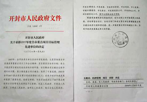 根据开封市人民政府关于表彰2007年度全市重点项目目标管理先进单位的决定”(汴政[20081),我院被评为开封市2007年度重点项目目标管理先进单位,并予以通报表彰。