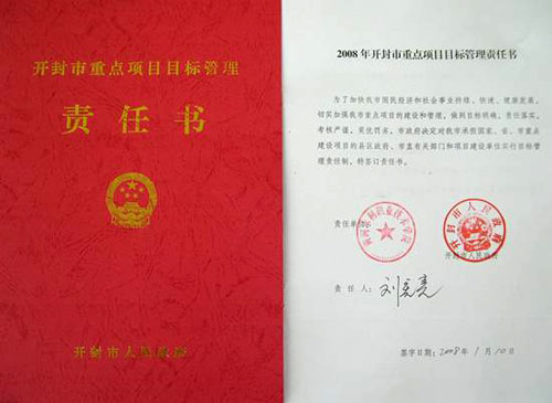 又讯 元月10日,我院院长刘宪亮作为2008年度开封市重点项目目标管理责任单位代表,在《2008年开封市重点项目目标管理责任书》签字,标志着我院2008年度建设项目继续纳入开封市重点项目目标管理。2008年度我院纳入开封市重点项目建设责任目标的单项工程有:师生公寓、水利水电技术实训基地、水利水电工程仿真实训中心、1号、2号、3号学生公寓建设项目。