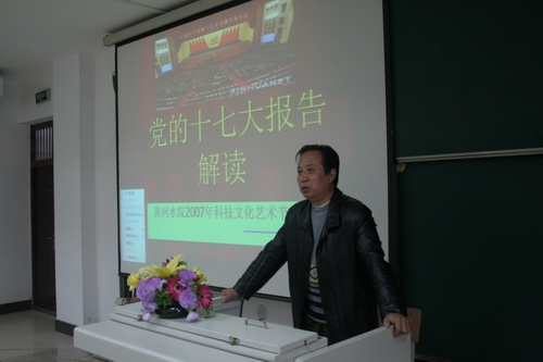 报告会上,胡引生老师对十七大报告的总体框架和基本内容进行了讲解,并就报告中同学们关心的、不太了解的部分进行详细的解读。老师联系到祖国的变化、学院的发展、同学们自身生活的变化,用朴实生动的语言解读了报告的精华部分,加深了同学们对十七大报告的理解和认识,使十七大报告精神进一步深入人心。