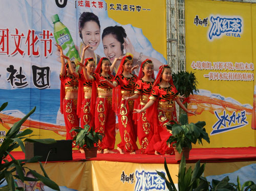 土木工程系武术协会的《武魂》,刚劲有力,气势威武;财经系青年志愿者协会的《印度风情舞》,婀娜多姿,妩媚动人;测绘工程系青年志愿者协会的《金孔雀》,配着悠扬的葫芦丝,一群“金孔雀”翩翩起舞,让观众领略了少数民族的风俗民情;大学生服务社的手语表演《订做一个天堂》,宁静优雅,感动人心,向大家传递了人间的真情与真爱。交谊舞表演、健美操、轮滑表演等都不断点燃着观众的热情,掌声、喝彩声此起彼伏,高潮迭起。在《祖国我慈祥的母亲》的高亢旋律中,演出圆满落幕。