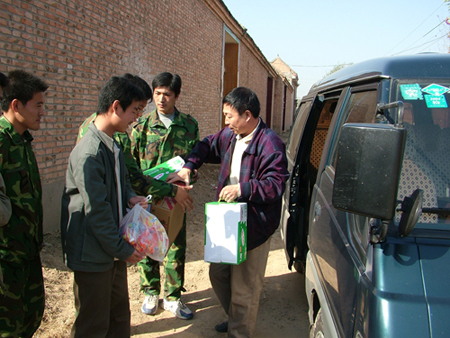 11月3日上午,我院社会主义新农村建设帮扶工作队成员李兴社等和组织部、测绘系等部门的同志一同来到杞县葛岗镇楚中村,看望了正在执行测量任务的5名测绘系师生,给他们送去了纯奶、香肠、方便面等生活用品。这是我院工作队在该村开展社会主义新农村建设帮扶工作的一个缩影。