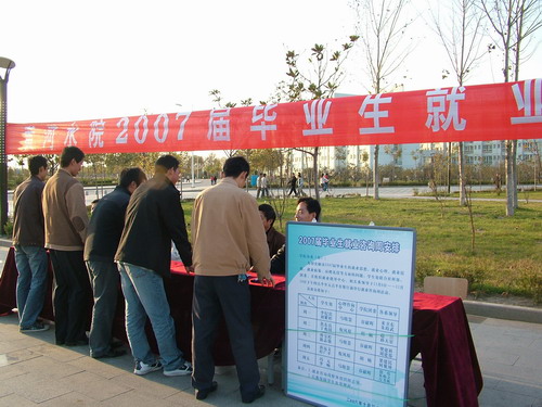 随着我院2007届毕业生供需见面会的日益临近,就业成为毕业生关注的热点问题。为帮助毕业生树立正确的就业观念,熟悉就业政策,懂得应聘礼仪,提高就业技能,学生处联合社科部、团委和相关系于11月6日——11月10日举行就业咨询周活动。据介绍,每天下午4:30——5:30,都会有工作人员在餐厅广场前接受同学们的就业咨询。