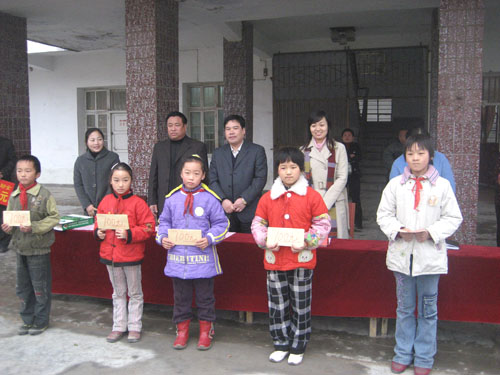 1122日上午,冒着淅淅沥沥的小雨,我院“百校结百村”希望工程小组和团市委领导一行6人来到了开封县范庄村小学,将价值1000多元的体育器材、图书文化用品,及1000元的助学金捐赠给了范庄小学和该校的贫困学生。