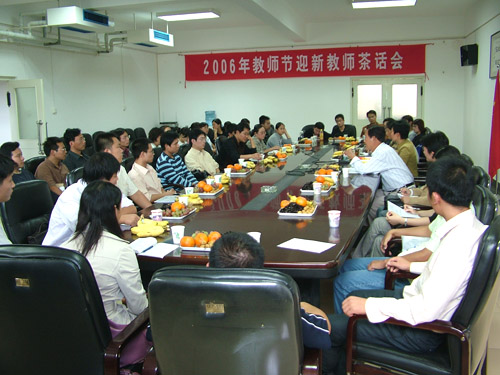 为迎接第22个教师节的到来,9月6日下午,院工会在行政楼第二会议室召开了2006年教师节新教师茶话会,40余名青年教师参加了茶话会。