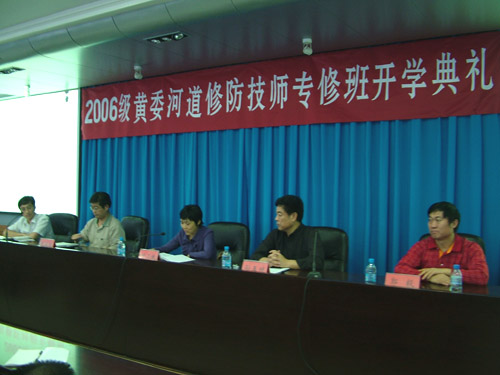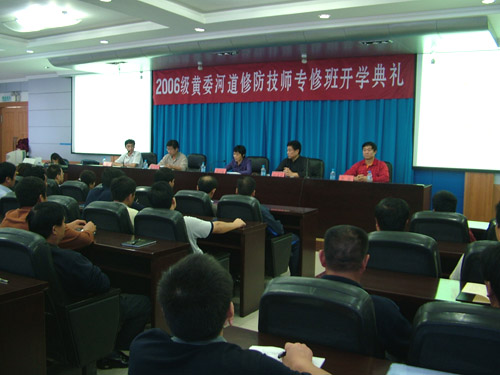 9月19日上午,由我院成教学院举办的黄委会06级河道修防技师专修班开学典礼在我院学术报告厅隆重举行。黄河水利委员会人力资源部主任叶乃纯、王国栋,我院副院长孙五继,成教学院党总支书记张春满、院长郭毅出席了开学典礼,本期专修班的66名学员参加了开学典礼。