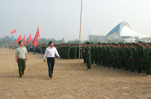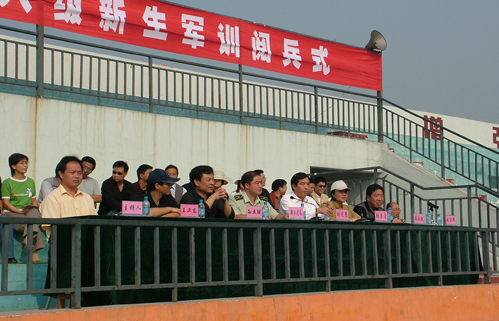 9月22日上午,我院2006级新生军训检阅式在田径场隆重举行。出席领导有院长刘宪亮,党委副书记张惠贞,副院长孙五继、茹正波,纪委书记王卫东,驻汴某部首长。会议由党政办公室主任杨士恒主持。