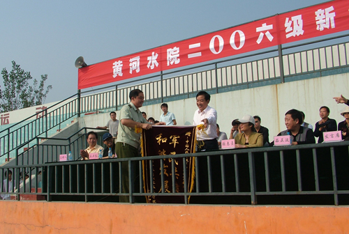 院长刘宪亮代表院党委、院行政向参加军训的2006级新同学表示热烈的祝贺,向驻汴某部的承训官兵表示诚挚的谢意。刘院长在讲话中充分肯定了2006年新生军训所取得的成绩,希望同学们把军训成果带到今后的学习、生活中去,在政治上、思想上巩固军训成果,树立良好形象,发扬克服困难、顽强拼搏、团结合作的精神,努力完成各项学习任务,不断提高全面素质,将自己塑造成为社会主义事业所需要的合格人才。