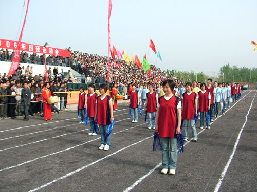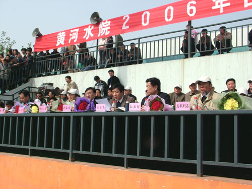 4月13日上午,黄河水院2006年春季田径运动会在新校区运动场隆重举行。院党委书记俞海洛、院长刘宪亮、院党委副书记张惠贞、副院长孙五继、纪委书记王卫东等出席了开幕式。运动会主席团成员、各系部处主要领导在主席台就座;全院部分师生员工参加了开幕式。开幕式由党政办主任杨士恒主持。