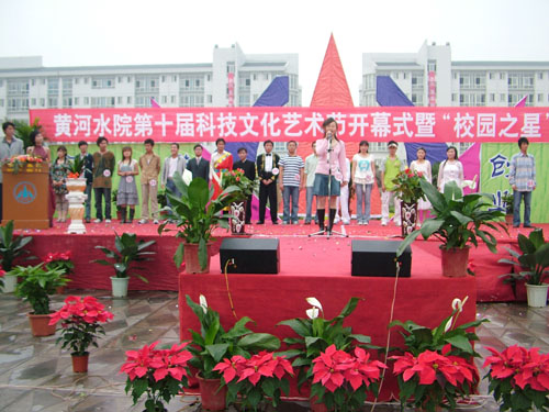 开幕式结束后,“校园之星”歌手大赛隆重登场。各系部选送的19名参赛选手进行了角逐,啦啦队挥舞彩旗等为选手加油助威,场面热烈而充满激情。最终,水利系韩文婷同学以一首《昆仑女儿歌》获得大赛冠军,交通系吴燕华同学的《冰雨》、测绘系晁阳同学的《母亲》同获一等奖。
