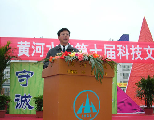 本届科技文化艺术节组委会主任、院领导王卫东在开幕式上致辞。他首先代表组委会对参加开幕式的领导、老师和同学们表示热烈欢迎。他说,本届科技文化艺术节的举办恰逢我院正在举行社会主义荣辱观系列教育活动,希望同学们能从我做起、从小事做起,“明荣辱之分,做当荣之事,拒为辱之行”,树当代大学生风采。