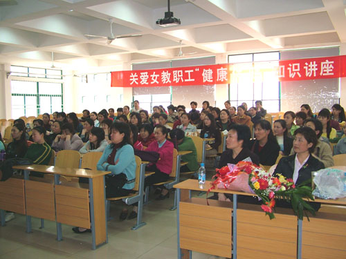 4月26日下午3点,院工会在JX6202教室举办关爱女教职工“健康保健”知识讲座,聘请开封市第一人民医院乳腺科副主任医师、乳腺病专家王爱萍,为我院近100名女教职工作了《乳腺病防治自我检查》专题讲座。