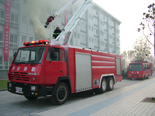开封市消防支队5辆消防车呼啸而至,展开灭火救援工作。两个高压水枪同时扑向“火龙”;消防官兵迅速向327、329房间架设梯子,一名消防队员从消防梯爬上了327房间,并迅速解下安全带,系在一位学生身上让其顺着梯子逃生,在保卫处王志刚、何长胜组织下学生按顺序撤离;一个巨大救生气垫已经被充起,在消防人员的指挥下,部分被困3楼的学生正有间隔、有顺序的跳向气垫的中心逃生;与此同时,我院的医务人员也赶到现场,对伤员进行紧急救治。这时,发现6楼有被困学生发出求救信号,消防支队迅速调来一辆曲臂登高车,进行高空人员疏散。