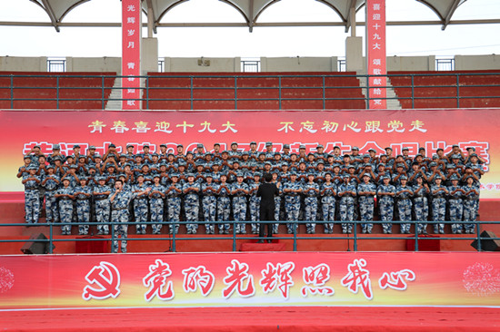 “青春喜迎十九大 不忘初心跟党走”新生合唱比赛是我校2017级新生入学教育的重要环节之一。此次活动的开展,进一步弘扬了爱国主义精神,营造了积极向上的校园文化氛围,丰富了我校大学生校园文化生活,引导广大青年学生践行社会主义核心价值观,更加坚定中国特色社会主义道路自信、理论自信、制度自信、文化自信,听党话、跟党走,以奋发向上的精神面貌迎接党的十九大胜利召开。(供图:团委)