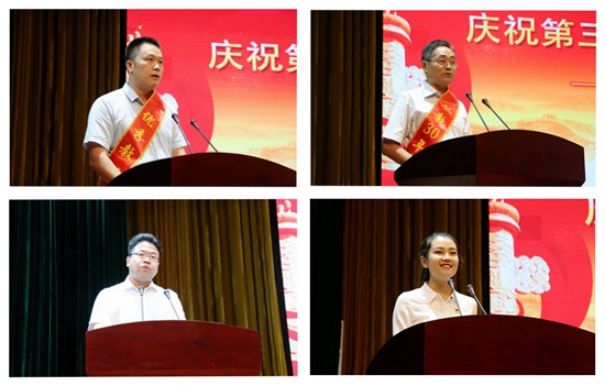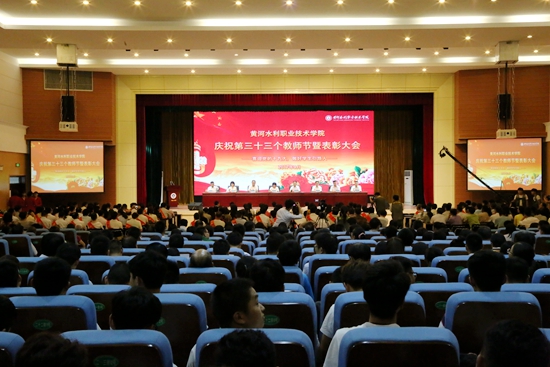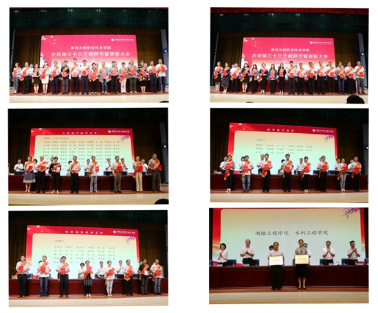 大会宣读了表彰先进集体和优秀个人的颁奖词,并举行了隆重的颁奖仪式。新入职教师进行入职宣誓、老教师重温誓词。优秀教师代表闫国新老师、从教30年教师代表务新超老师分别结合自身的成长经历和教学科研实践,畅谈工作和生活的体会。中国水利水电第十一工程局牛永杰校友及学生代表张毓颖分别发言,为老师致以节日的祝福。