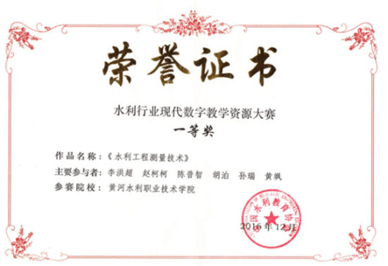 据悉,中国水利教育协会于2016年8月—11月组织举办了本次大赛,旨在推进优质数字教育培训资源共建共享,更好地为水利人才队伍建设服务。大赛共收到30余所院校共37门参赛课程,最终评出一等奖2名,二等奖5名,三等奖9名。我校参赛课程建设历时3个多月,共完成理论教学视频360余分钟,外业实训教学视频100余分钟,提供PPT、讲义、实训指导书、试题等辅助学习材料100余份,内容丰富详实,能够较好满足立体化学习需求。
