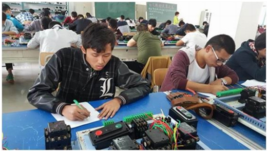 电气控制赛项赛场上的印尼留学生