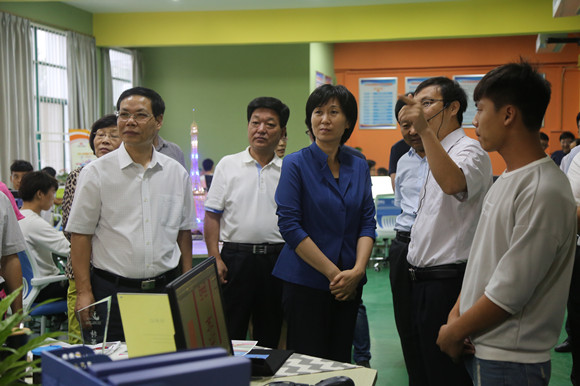 侯红市长一行来到我校创新工作坊、市级众创空间,兴致勃勃地参观了各个创新工作室,对我校学生在新工艺、新技术、新产品、新方法等方面的创新创业项目表示赞赏,对我校学生的创新能力与专业技能水平表示肯定。在与学生的亲切交谈中,侯市长详细询问了学生创新创业项目的运行情况、遇到的瓶颈,并在运营模式、资金周转等方面提出建议,同时鼓励学生积极适应大众创业、万众创新的新常态,进一步提升自身创新创业能力。当看到我校获得全国职业学校创新创效创业大赛特等奖项目——“寻宋记”开封旅游纪念品开发项目时,侯市长表示,开封市将大力支持该项目旅游纪念品的深度开发,并鼓励学生积极推广和弘扬开封旅游文化,不断提升服务地方经济社会发展的能力。