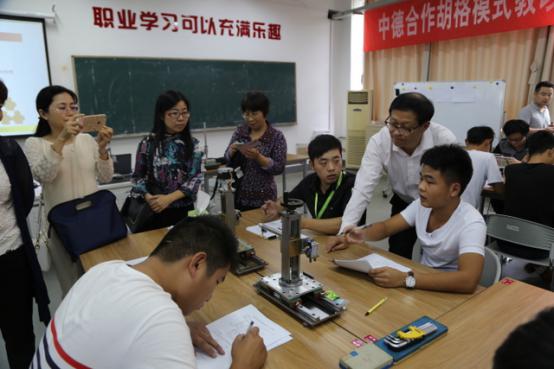据悉,签约的该项目将系统地引进以德国职业教育专家胡格先生为代表的德国制造业技术技能人才培养理念、机制和教学模式,通过系统培训,培养一批掌握德国制造业技术技能人才培养理念、能熟练运用先进教学方法教学的教师;建立符合中国国情的机械制造专业行动导向的项目化课程体系;建立新教学模式下的教与学的考核评价体系;通过借鉴德国职业教育注重学生全人格培养的理念与做法,探索与实践中国职业教育课堂教学转型发展和创新发展的新路径。常州机电职业技术学院做为中德合作第一批胡格教学模式改革项目学校代表,分享了该校注重实质性引进国外优质的教育资源、组建优秀的专业教学团队、注重课程的设置与教学的管理、关注学生成长等具体做法。目前,该试点班的胡格教学模式已经取得了一定的成效。(编辑:郝迪婧)