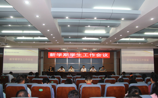 8月27日上午,我校在3号实训馆学术报告厅召开新学期学生工作会议,校党委副书记刘卫锋出席会议并讲话。学生处、团委全体人员,各院(系)学生工作分管领导,党总支办公室主任,全体辅导员,试点院(系)班主任参会。学生处副处长王国英主持会议。