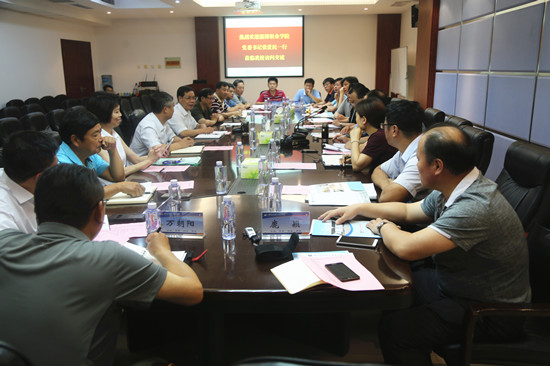 座谈会后,许琰书记陪同来访客人参观了我校实验实训基地和“足迹”文化景观。两校各相关部门负责人就“十三五发展规划”、校企合作、教学与科研管理、学生管理、继续教育和信息化建设等方面进行了深入的对口交流。